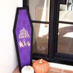 Haunted Mansion Coffin Wooden Sign – Purple Gothic Halloween Porch Decor