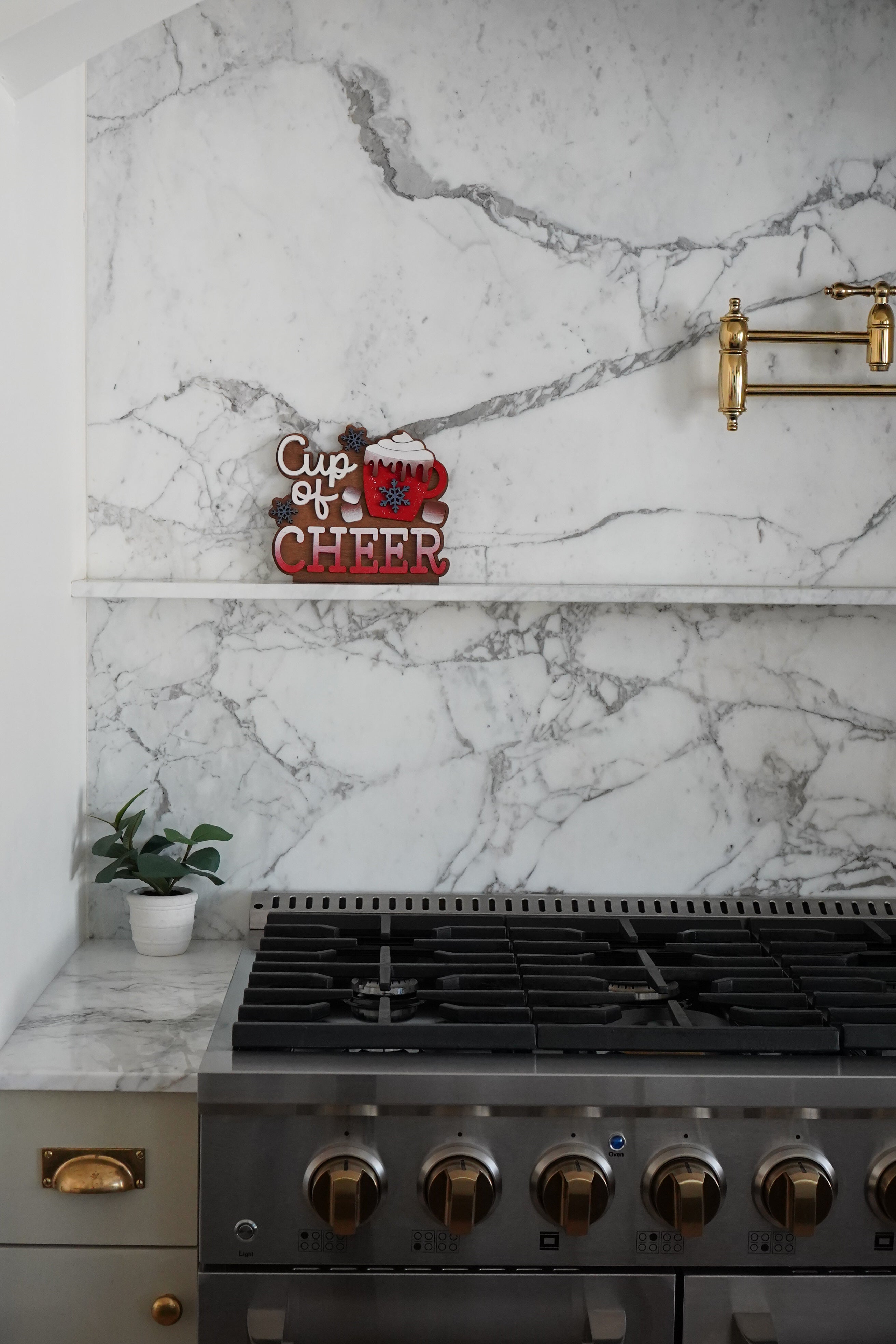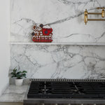 Styled here in a modern marble kitchen, this sign fits beautifully with neutral décor while adding a playful pop of holiday color. It’s the perfect little accent to spark joy all season long.