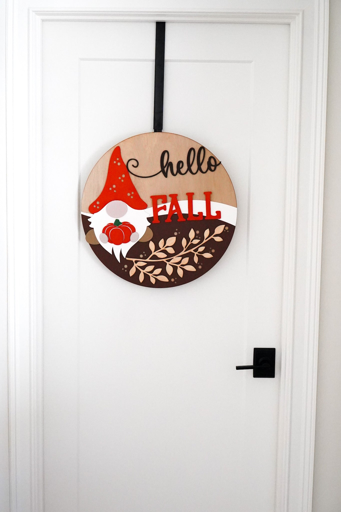 Hello Fall Gnome Wooden Door Sign – Laser Cut Autumn Front Porch Décor